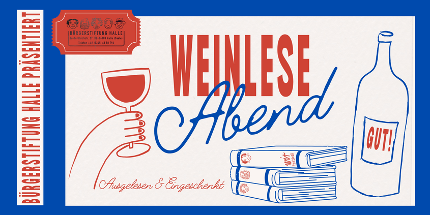 Der Eintritt ist frei. Aufgrund der begrenzten Plätze bitten wir Sie dennoch, sich vorher anzumelden. Entweder unter https://buergerstiftung-halle-weinleseabend.eventbrite.de oder per E-Mail veranstaltungen@buergerstiftung-halle.de.