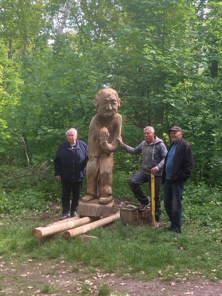 Olle Knolle kommt zurück: Die Holzfiguren des Künstlers Jewgeni Sidorkin in der Heide sind beliebt, deshalb wurden sie - zwischenzeitlich witterungsbedingt zerstört - inzwischen durch neue Figuren ersetzt. Sie sind nun aus einer anderen, hoffentlich widerstandsfähigeren Holzart geschnitzt. Dies wurde durch viele Spenden und viel zeitliches Engagement ermöglicht; der Verein Hilfe für Flüchtlinge und Aussiedler e.V. ist hier die treibende Kraft . Die zehnte Figur, die den ,,ollen Knolle" von Knolls Hütte darstellt, muss nun per Kranwagen vom Hof des Künstlers abgeholt werden. Die Bürgerstiftung unterstützt die Abholung mit 250 Euro.